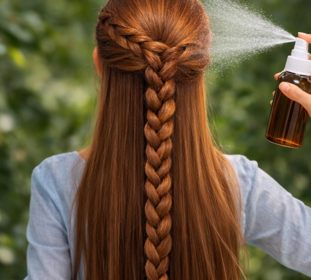 “Rosemary dew” odkazuje na a domácí rozmarýnová infuze nebo tonikum — jemný, přírodní sprej vyrobený z listů rozmarýnu a vody. Aplikuje se přímo na pokožku hlavy a kořeny, kde se věří, že časem stimuluje vlasové folikuly.